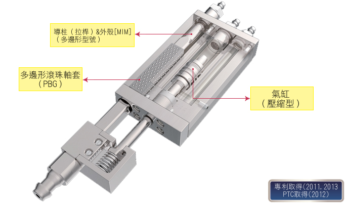 採用PBG®滾珠軸套多角形導向器以保障同向性,防止迴轉,實現高精度往返